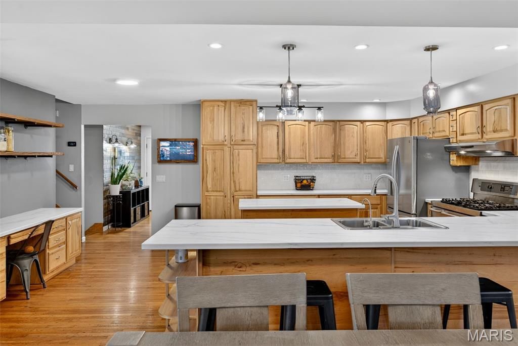 If you've been dreaming of a main-floor primary suite, main-floor laundry, a massive updated kitchen, and enough space to host everyone you love... you've finally found the one! This layout is truly unlike anything you've seen before. With 4 bedrooms, 4 full bathrooms and over 3,300 finished sq ft plus ~1,600 additional square feet of unfinished storage and workshop space, this home offers a rare and versatile layout you simply won't find anywhere else.The main-level primary bedroom is a true retreat, featuring vaulted ceilings, a spa-like vaulted bath with separate tub and shower, and a large walk-in closet. Even better, it's situated across the home from the other three bedrooms-one of which serves as a SECOND primary suite with its own full bath, making it perfect for guests or multi-generational living.The stunning kitchen is a dream for any home chef, offering a breakfast bar with seating, a center island, stainless steel appliances, a 5-burner dual-fuel gas stove, and an abundance of cabinet space! It opens seamlessly to a massive vaulted dining room, which flows into an incredibly spacious living room, creating the perfect setting for entertaining or everyday living.One of the home's most unique features is its multiple basement areas. One area includes a cozy entertainment space with a gas fireplace, dry bar, and full bathroom, ideal for guests, game nights, or a private suite. The second finished area is perfect for a home theater, gym, or hobby room. Beyond that, you'll find an enormous (approx 37 by 43 foot) split storage and workshop area, giving you unmatched space for projects and storage!Looking for true peace of mind? The current owners have invested in major upgrades, including a brand-new HVAC system (2024), Active Gold whole-house air purification system, tankless water heater (2022), whole-house water softener and carbon filtration system, reverse osmosis drinking water system, roof (2018), vinyl windows, and maintenance-free aluminum fascia and soffits. And the exterior? Just as impressive. Enjoy a large composite deck overlooking a fully fenced backyard, with a level grassy area, slightly elevated for added privacy. Several garden boxes are already started for you to grow herbs or tomatoes, and the drainage system and landscaping lights are just a bonus! There's even a firepit, perfect for relaxing spring and summer evenings under the stars. Also worth noting are the two car garage, large driveway, and the adorable covered front porch! This unique and spacious home is unlike anything you've ever seen! You have to stop by our open house to check this one out! Open House Friday (April 10th) evening from 5-7pm!